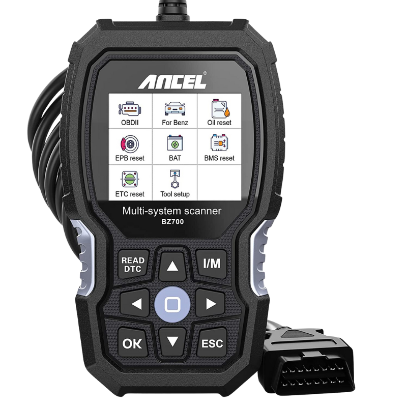 Ancel BZ700 — диагностический сканер для Mercedes-Benz и Smart. Поддерживает чтение и удаление ошибок, адаптацию модулей, более 30 сервисных функций и кодирование.