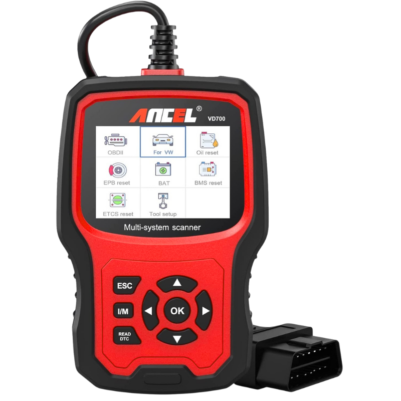 Ancel VD700 — это профессиональный автосканер для автомобилей Volkswagen Group (VW, Audi, Skoda, Seat). Он поддерживает диагностику всех систем автомобиля, включая двигатель, ABS, трансмиссию, подушки безопасности и ESP. Сканер сочетает компактный корпус, цветной дисплей и многоязычный интерфейс, включая русский язык. Отличается простотой в работе и поддержкой сервисных функций, необходимых для обслуживания автомобилей VAG.