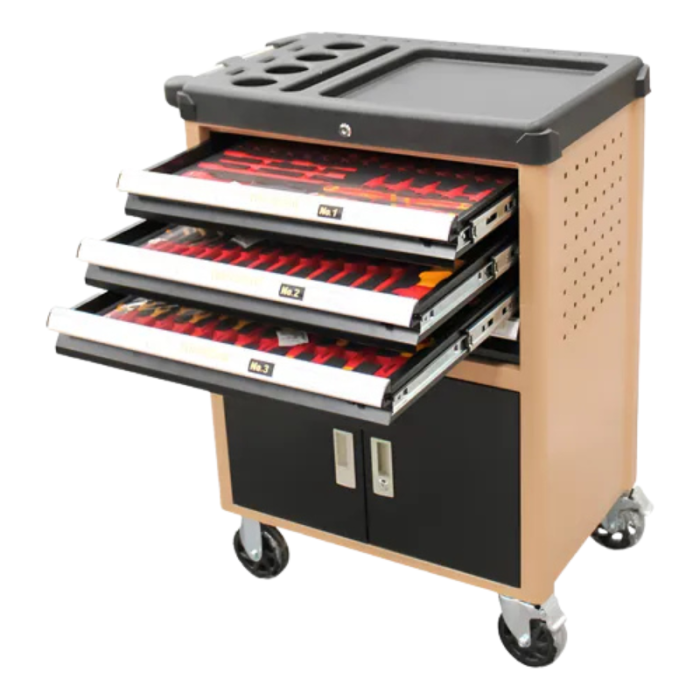 | 3-й ящик | Набор из изолированных инструментов VDE (отвёртки, пассатижи, кусачки и др.) | 47 шт. |