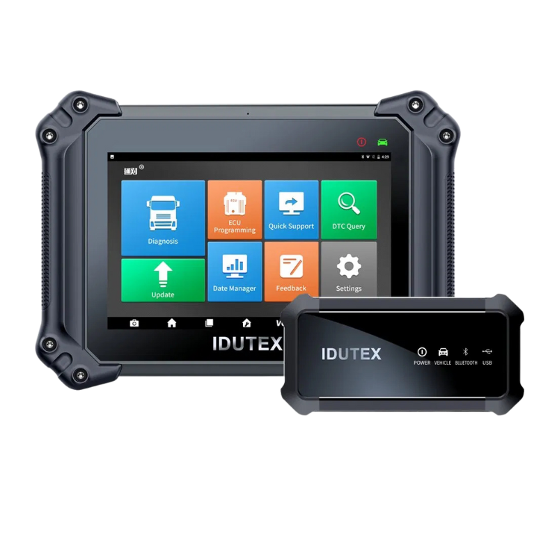 IDUTEX TS-810 Pro — профессиональный мультимарочный автосканер для грузовых авто, коммерческого транспорта, спец- и сельхозтехники. Поддерживает европейские, американские, азиатские и китайские марки. Оснащён планшетом на Android, VCI-модулем и двухлетними бесплатными обновлениями.