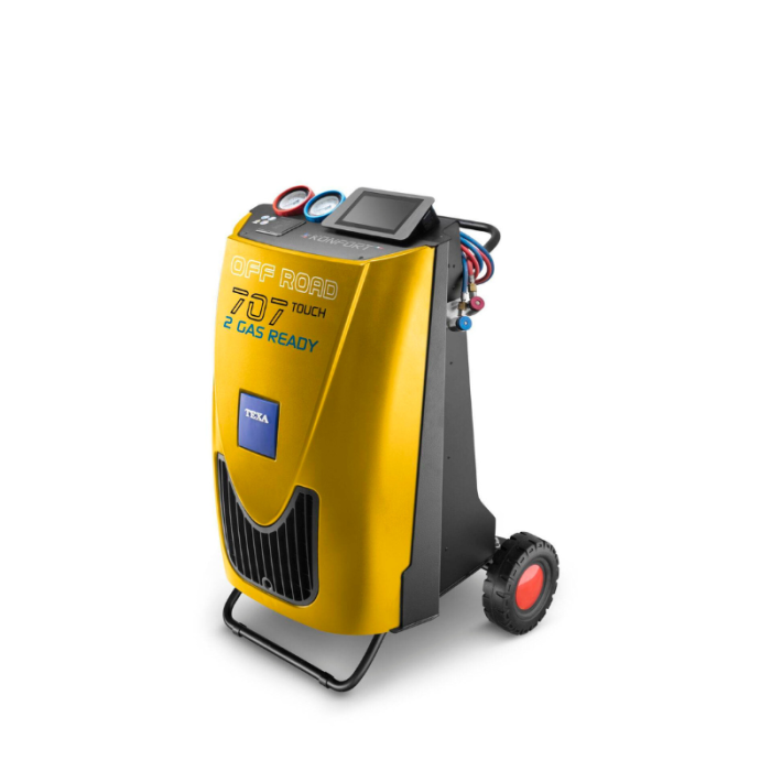 TEXA 707 Touch Off Road R1234yf — профессиональная установка для заправки автокондиционеров с сенсорным дисплеем и внедорожными колёсами. Она обеспечивает точность, надёжность и удобство для современных СТО.
