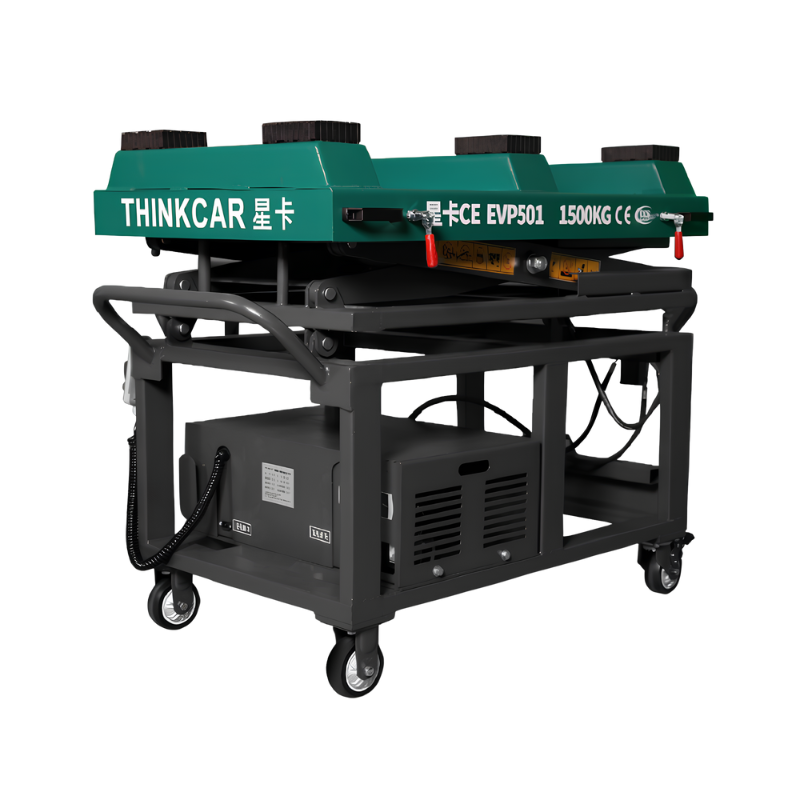 THINKCAR CE EVP 501 — электрогидравлический подъёмник для аккумуляторов электромобилей. Грузоподъёмность 1500 кг, высота подъёма 1150–1785 мм, питание 12 В, мощность 1,6 кВт. Платформа оснащена изоляционными прокладками и системой защиты от самопроизвольного спуска. Идеален для сервисов, обслуживающих гибридные и электрические автомобили.