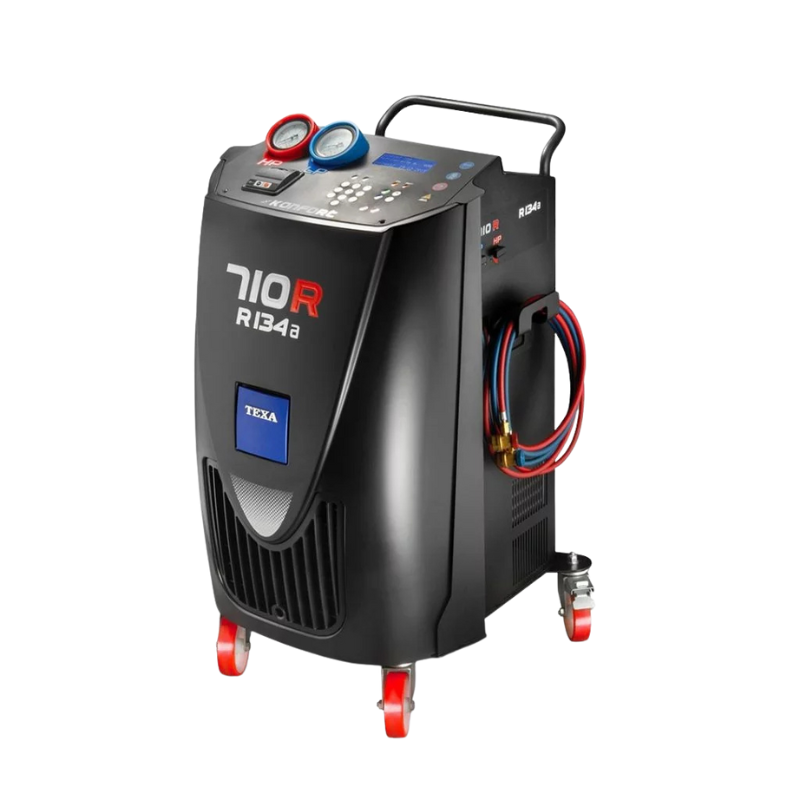 TEXA Konfort 710R — автоматическая установка для заправки автокондиционеров с хладагентом R-134a. Имеет автоматический и ручной режимы, LCD-дисплей, базу данных на SD-карте, три флакона для масел и красителя, вакуумный насос 100 л/мин и точность дозировки ±5 г. Производство Италия.