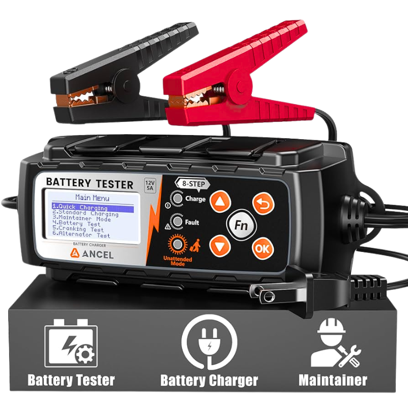 Ancel BT521 — многофункциональный зарядно-тестовый прибор 3-в-1, который объединяет функции зарядного устройства, тестера и поддерживающего режима для свинцово-кислотных аккумуляторов 12 В (WET, AGM, GEL и др.).